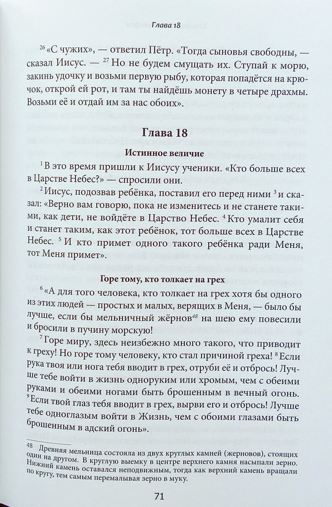 «Конечно, после прочтения этого учебного Евангелия хорошо бы добраться и до толкований священных текстов, например, святителем Иоанном Златоустом или блаженным Феофилактом Болгарским. Но с чего-то всегда надо начинать, и мы надеемся, что данное издание поможет Вам сделать именно это – начать.