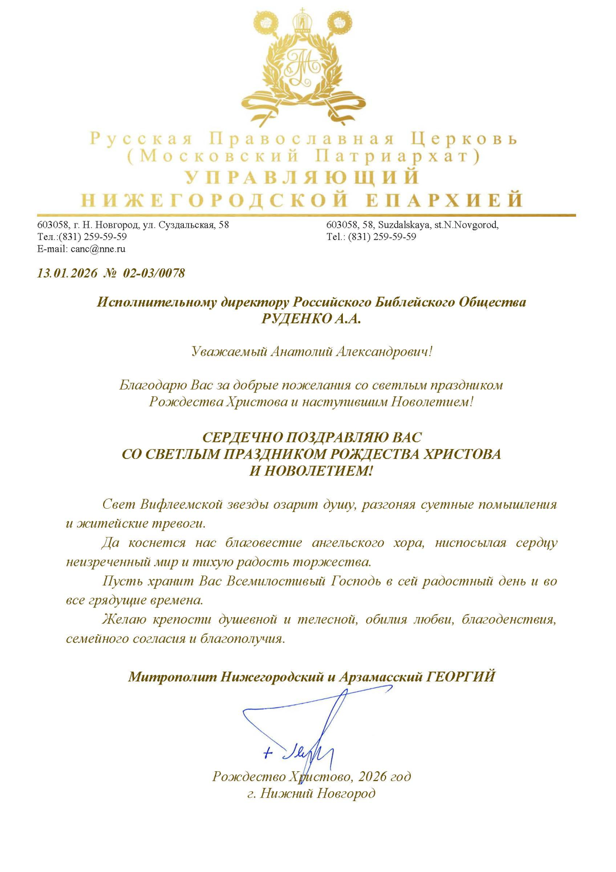 Нас поздравляют с Рождеством Христовым и Богоявлением