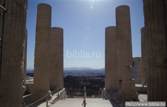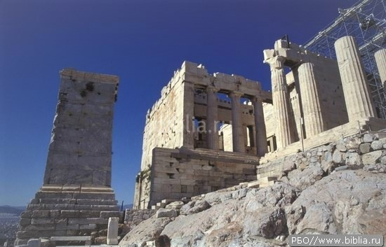 Афины. Вид на Акрополь. На переднем плане - Ареопаг
