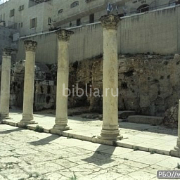 Иерусалим. Площадь времен Ирода. Сохранились мостовые и две колонны. Сейчас эта площадь находится ниже уровня города и является частью туннеля под Храмовой горой