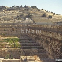 Иерусалим. Масличная гора. Слева – гробницы в долине Кидрона. За холмом -- купола храма св. Марии Магдалины