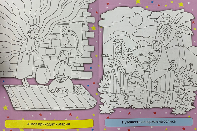 Прочитай и раскрась историю о первом Рождестве — о том, как в Вифлееме родился Иисус Христос.