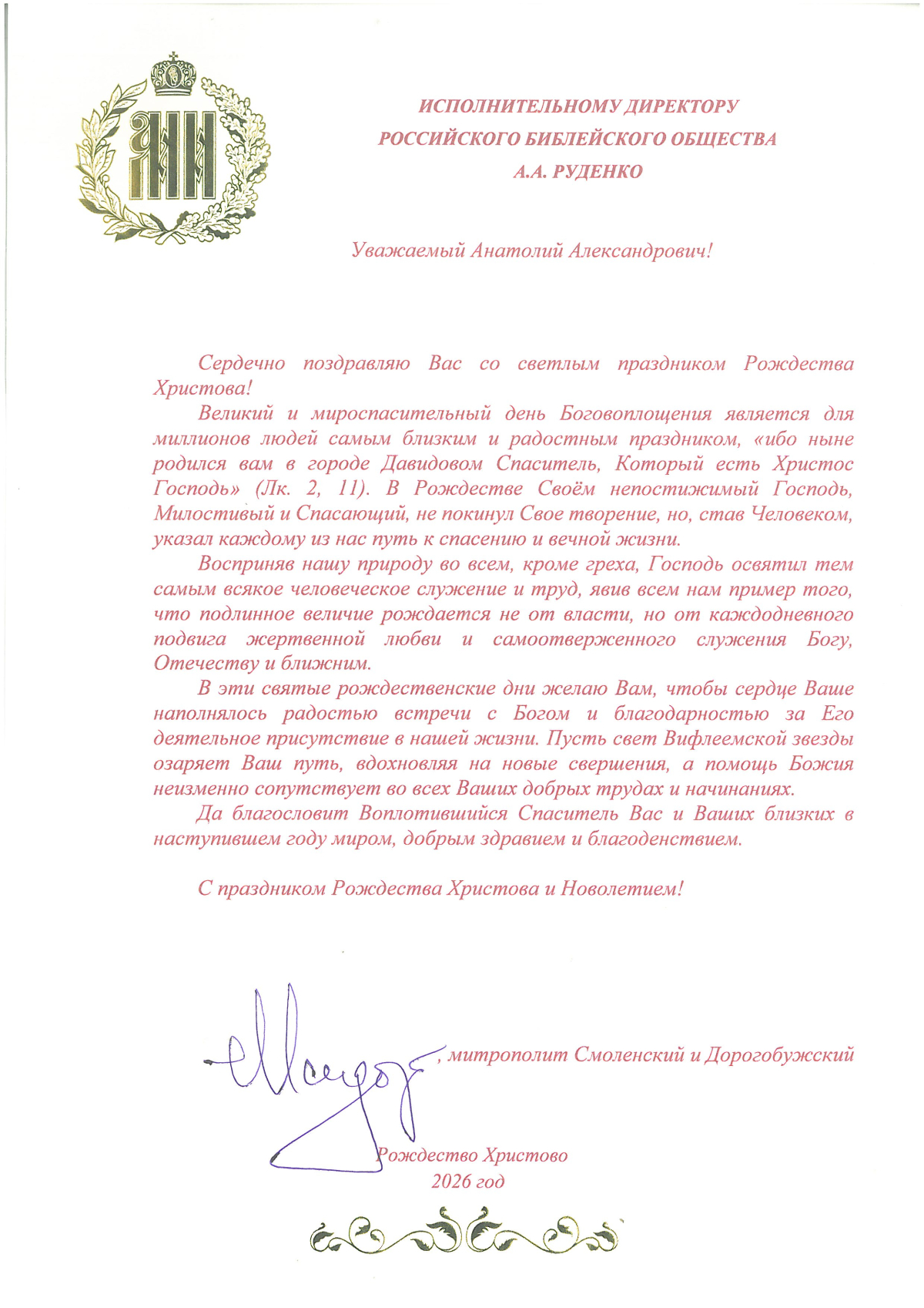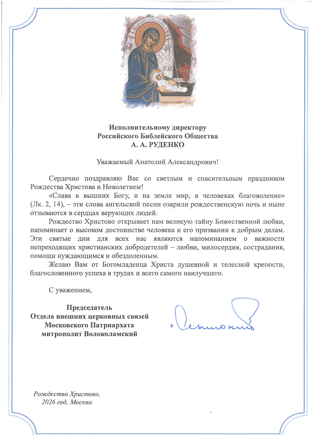 Нас поздравляют с Рождеством Христовым и Богоявлением