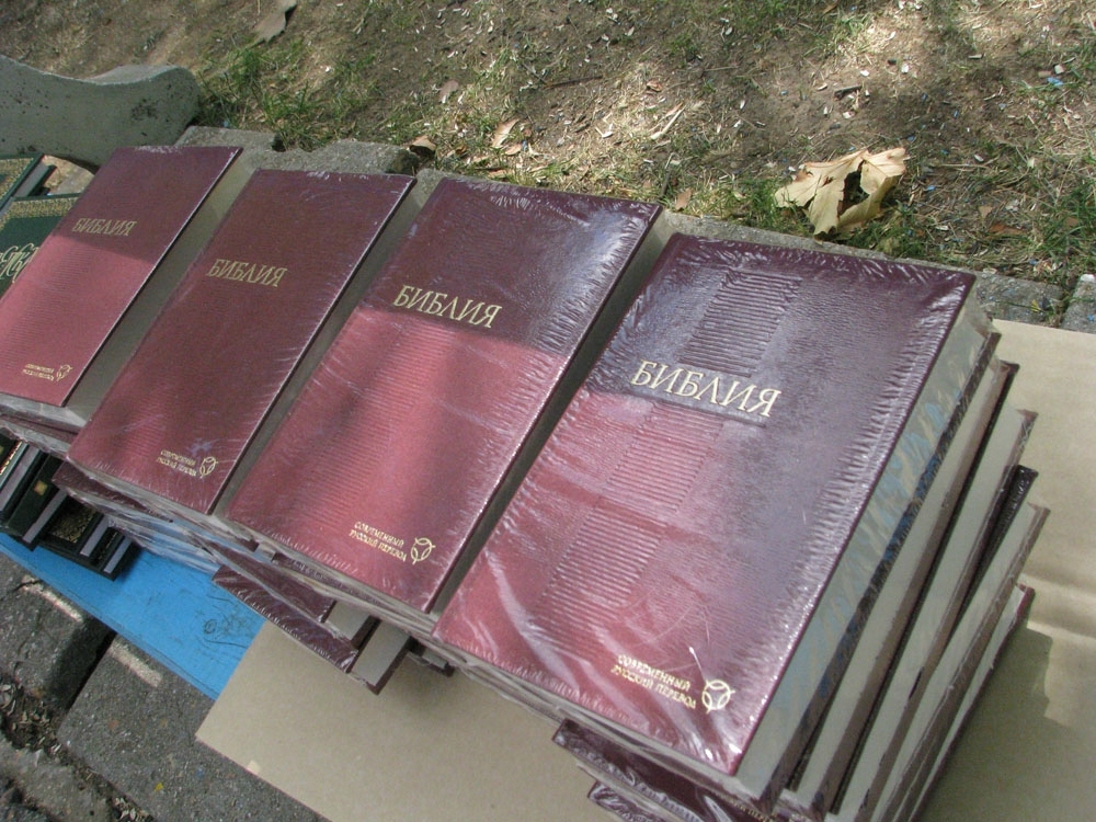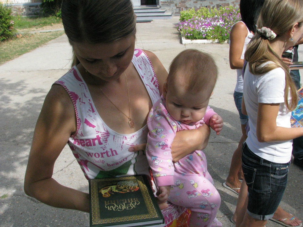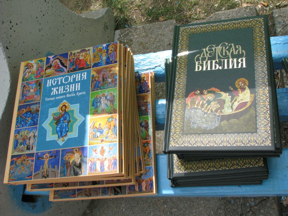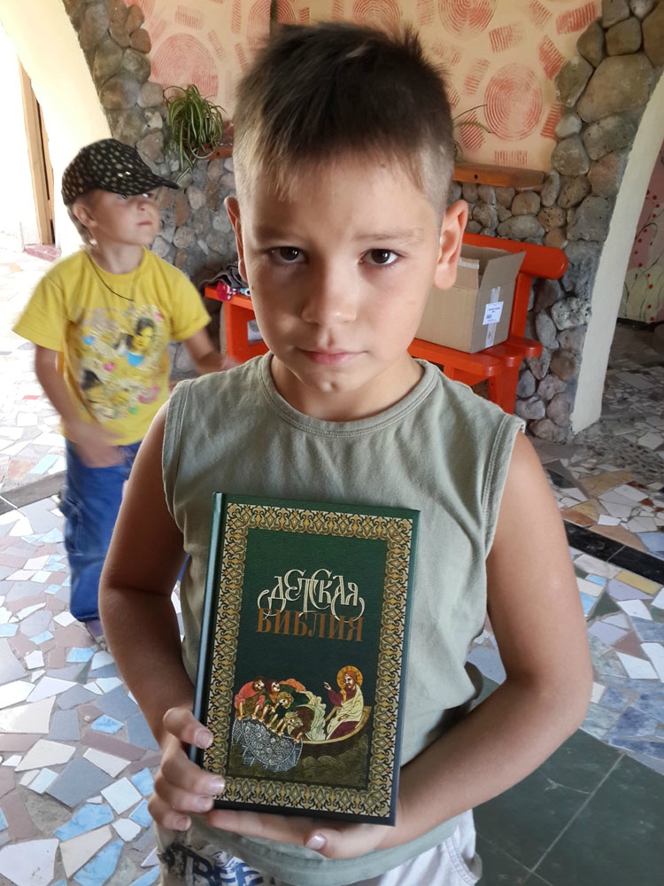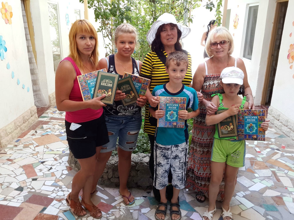 Священники Евпаторийского благочиния посетили местные здравницы, в которых получили временный приют беженцы с юго-востока Украины, и передали им в дар духовную литературу, присланную в Крым Российским Библейским обществом. В частности, из Москвы беженцам была передана Библия, книга «История жизни Господа нашего Иисуса Христа» и Библия для детей – с красочными иллюстрациями. 29 августа 2014 года духовную литературу диакон евпаторийского Свято-Николаевского собора Элизбар Рустамов вручил переселенцам из Луганска и Горловки, остановившимся вместе с детьми в пансионате «Алмазный».