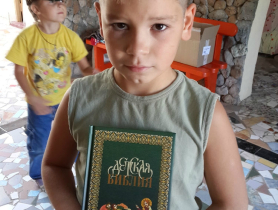 Настоятель храма во имя священномученика Порфирия иерей Илья Малютин отвёз книги беженцам из Донецка и Луганска в санаторий «Роза», что в посёлке Заозёрном. Отец Илья также совершил водосвятный молебен и пожелал своим духовным чадам Божьего благословения, доброго пути и благополучного обустройства на новом месте – в тех регионах России, которые изъявили желание принять беженцев у себя, обеспечив их рабочими местами и жильём.