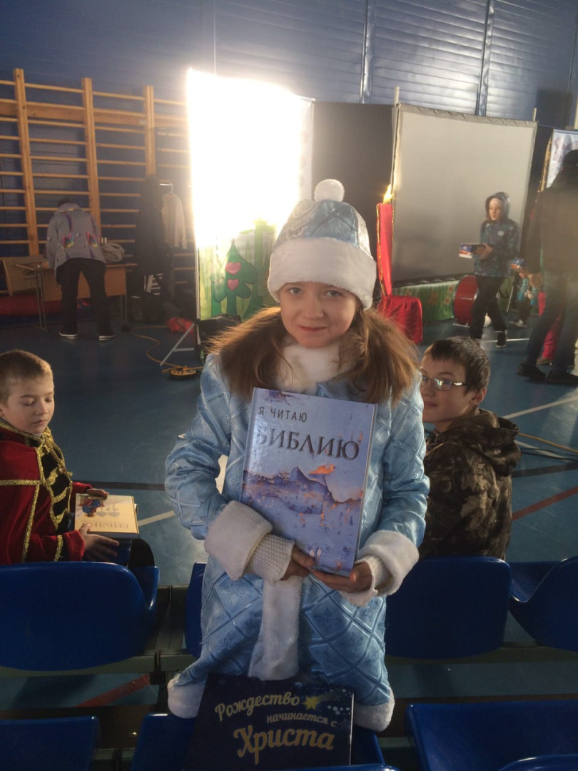 Братья и сёстры, благодарим вас, что в эти праздничные дни в подарок от нас с вами дети получили Слово Божие и немного больше узнали о Рождестве. А кто-то из них впервые услышал о рождении Иисуса Христа. Слава Богу, что в общей сложности около 600 ребят из Хакасии и Красноярского края стали обладателями собственной Библии. Спасибо.